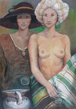 GOFFREDO CIVITARESE Chieti 30/01/1938 - Figure orientali, olio su tela cm. 100x70, firma in basso a sinistra e al retro, dichiarazione d'autenticità dell'artista e archivio a cura della Meeting Art (VC) su foto.