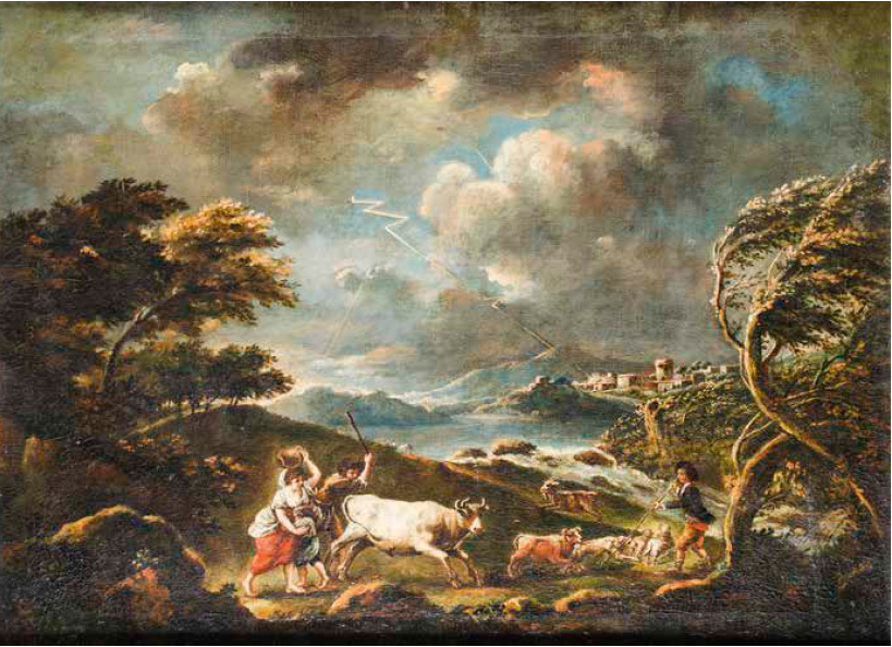 Francesco Zuccarelli Pitigliano 1702 – Firenze 1788 L’ARRIVO DELLA BUFERA olio su tela, cm 70x90. Stima: € 8.000/10.000 L’opera è stata ricondotta alla mano del Maestro dalla Dottoressa Federica Spadotto in una comunicazione scritta alla proprietà