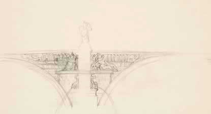Armando Brasini (attribuito) Roma 1879 – 1965 BOZZETTO PER PONTE FLAMINIO A ROMA matita su carta, cm 23x41