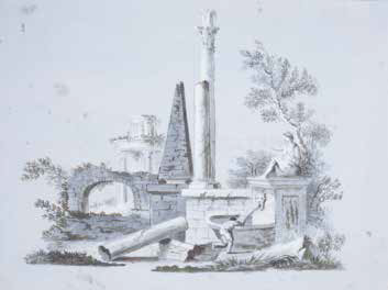 Scuola Veneta del XIX secolo CAPRICCIO ARCHITETTONICO tempera e biacca su carta, cm 12,5x17