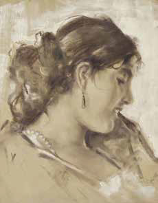 Attribuito a Francesco Paolo Michetti Tocco da Casauria 1851 – Francavilla al Mare 1929 RITRATTO FEMMINILE tempera e biacca su carta, cm 47x38. Iscritto in basso a destra: Michetti