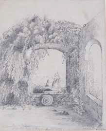 Scuola Inglese del XIX secolo DOMUS DEL PALATINO matita e biacca su carta, cm 23x17,5. Tracce di firma in basso a destra. Datato: 1842