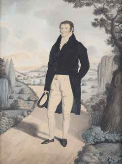 Scuola Francese del XIX secolo GENTILUOMO NEL SUO GIARDINO acquerello su carta, cm 37,5x29