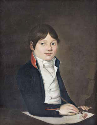 Scuola Francese del XIX secolo FANCIULLO CHE DISEGNA olio su tela, cm 61x49.