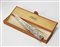 Silver paper knife with acrobats figures. Milan, 1950s. Silver titled 800 and marked. in original casebox. (gr 100)