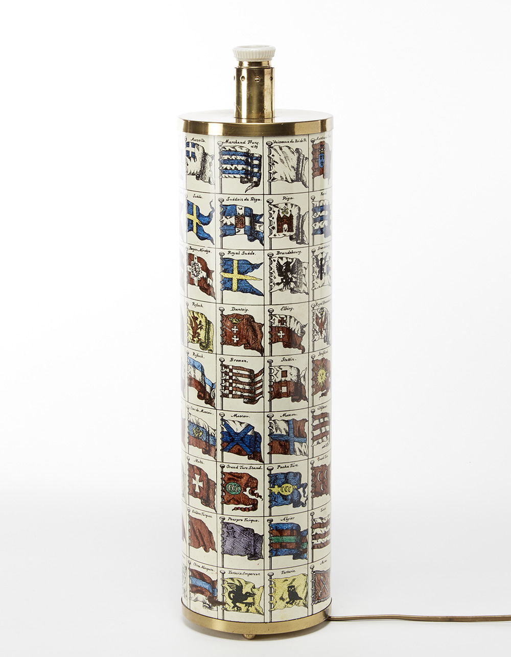 Base di lampada da tavolo "Bandiera". Milano, anni '60. Ottone serigrafato. Recante etichetta adesiva sotto la base. (h cm 58) (difetti)