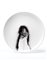 Glazed ceramic plate with black decorations on a white coat.. Signed and numbered 4/50 under the base. (d 44 cm.)