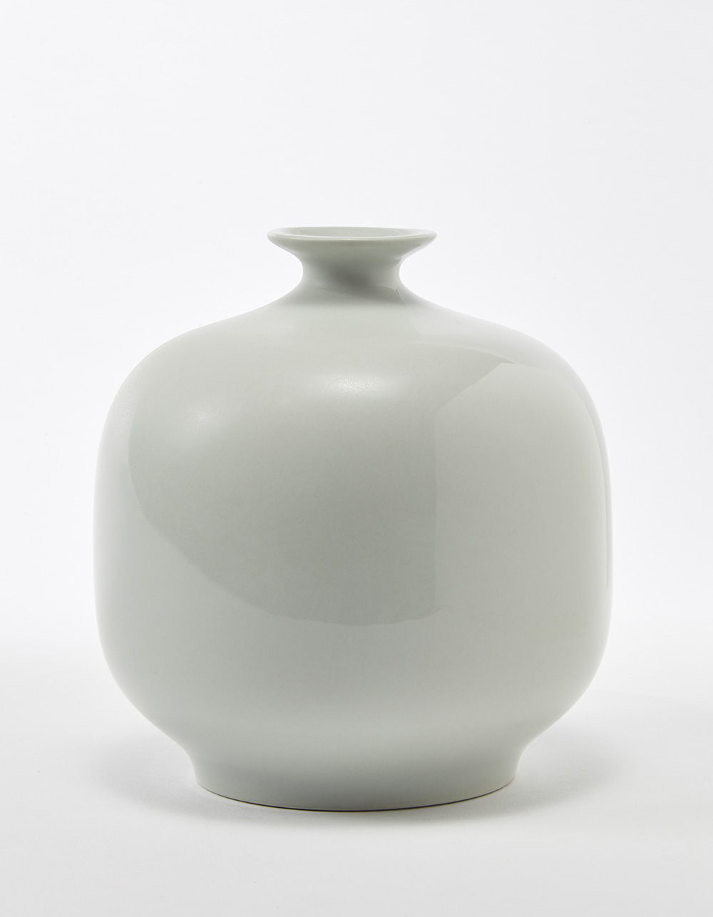 Vaso a collo stretto in ceramica smaltata in grigio. Esecuzione Richard Ginori, Milano, anni '50. Marcato "Richard Ginori" in verde sotto la base e con numerale 4053 incusso. (h cm 15)