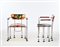 Two chairs model "544 Broadway". Produced by Bernini, Italy, 1993. Stainless steel frame, four legs with spring feet and multi-colored epoxy resin back, seat and armrest. (61x75.5x51 cm.)