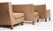 Sitting-room setcomprising two sofas and an armchair with wooden structure, beige leather covering. Execution by Pierino Frigerio, Cantu, 1962ca. (Sofas: cm 127x82x70; armchair: cm 77x80x77) (defects)