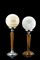 Two table lamps in Déco-style. Chromed metal structure, plastic and amber resin; glass globe diffusers. 20th century. (h 41 cm.; h 44 cm.) (slight defects and restoration)