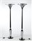 Coppia di lampade da terra di gusto déco con struttura in legno ebanizzato e metallo cromato e diffusore in alluminio cromato e verniciato bianco. Secolo XX. (h cm 187; h cm 185) (lievi difetti e restauri)