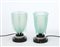 A pair of Art déco table lamps with black and alabaster marble base and diffuser in opalescent green blown glass, acidato on the external surface. 1930s. (h 23 cm.) (slight defects)
