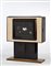 Ebonized bar-cabinet with pink-amber crystal mirrors and wood basement with bacellatura; central front-fall cupboard painted by Gigi Del Giudice and representing swans and frog in a pond. Interior covered by pink-amber mirrors. Lateral parts with glass shelves. Veneered top compartment. Italy, 1930s. (120x142x40 cm.) (defects and losses)