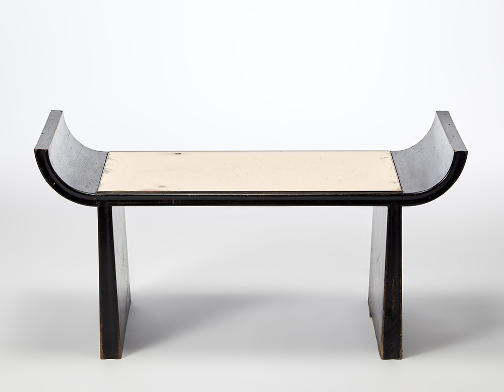 Ebonized wood coffe table with pink-amber mirrored glass on the top. Rome, 1930s. (58.5x39x33 cm.) (slight defects)