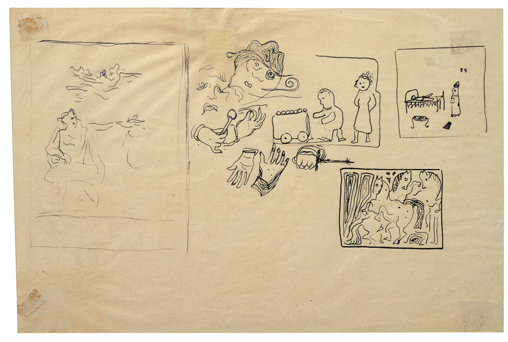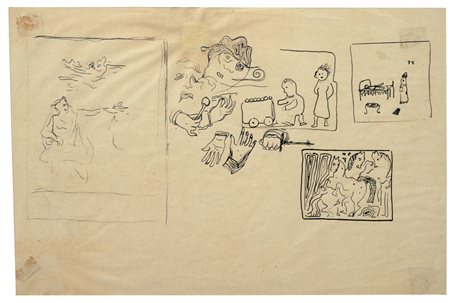LUCIO FONTANA Rosario Santa Fe' (Argentina) 19/02/1899 - Varese 06/11/1968 - Studi vari, 1939, inchiostro su carta cm. 22x32, opera non firmata, dichiarazione d'utenticità di Teresita Fontana su foto, opera registrata presso l'archivio Lucio Fontana come da dichiarazione su foto.