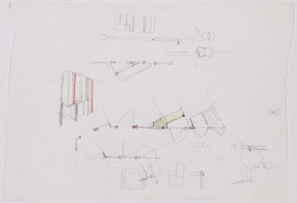 Carlo Scarpa (Venezia 1906 - Sendai 1978)Pianta schizzo prospettico e...