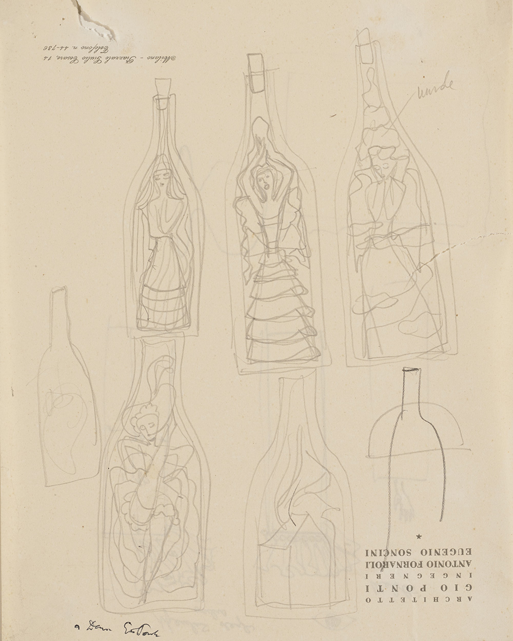 Gio Ponti (Milano 1891 - Milano 1979)Studio di sette bottiglie probabilmente...