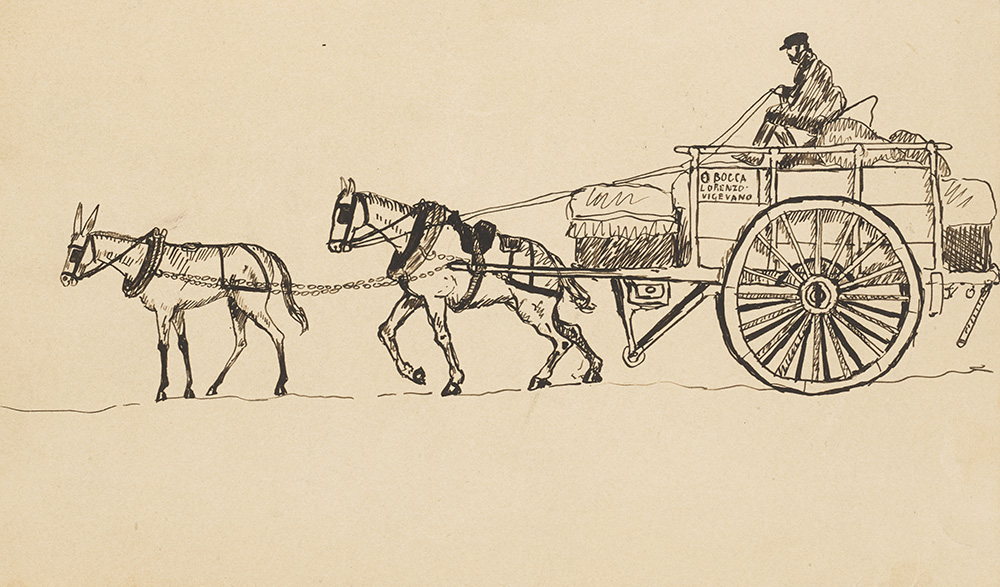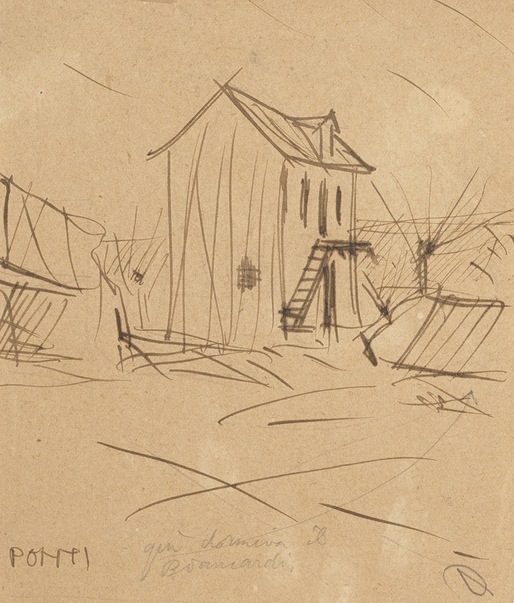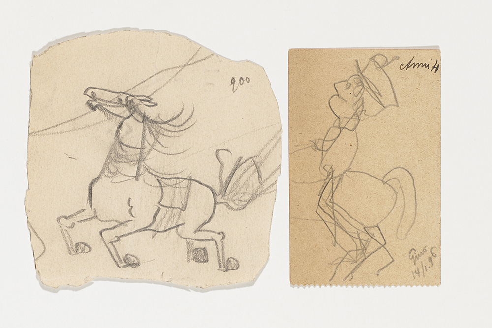 Lot comprising eleven small caricatures, landscapes and portraits dating to chilhood, to the period at the Politecnico in Milano and to the period of the 1st World War. Some initialle, signed and dated. Milan, 1896-1918. (different sizes) (slight defects)