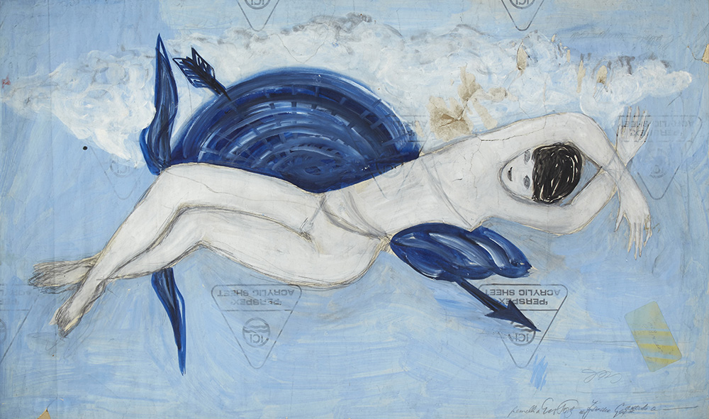 Bozzetto ripreso dal dipinto a olio del 1931 della collezione di Daria Guarnati. Milano, anni '60/'70. Tecnica mista su pellicola protettiva per perspex. Iscritto a matita in basso a destra. (cm 60x100) (difetti e mancanze)