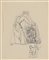 Studio per figurazione pittorica, probabilmente eseguito per il ciclo dell'Università di Padova, o per le illustrazioni della rivista "Stile". Milano, anni '40. Grafite e inchiostro di china nero su carta. Firmata in basso a sinistra “Gio”. In passpartout di cartoncino bianco. (cm 28,5x22) (difetti)