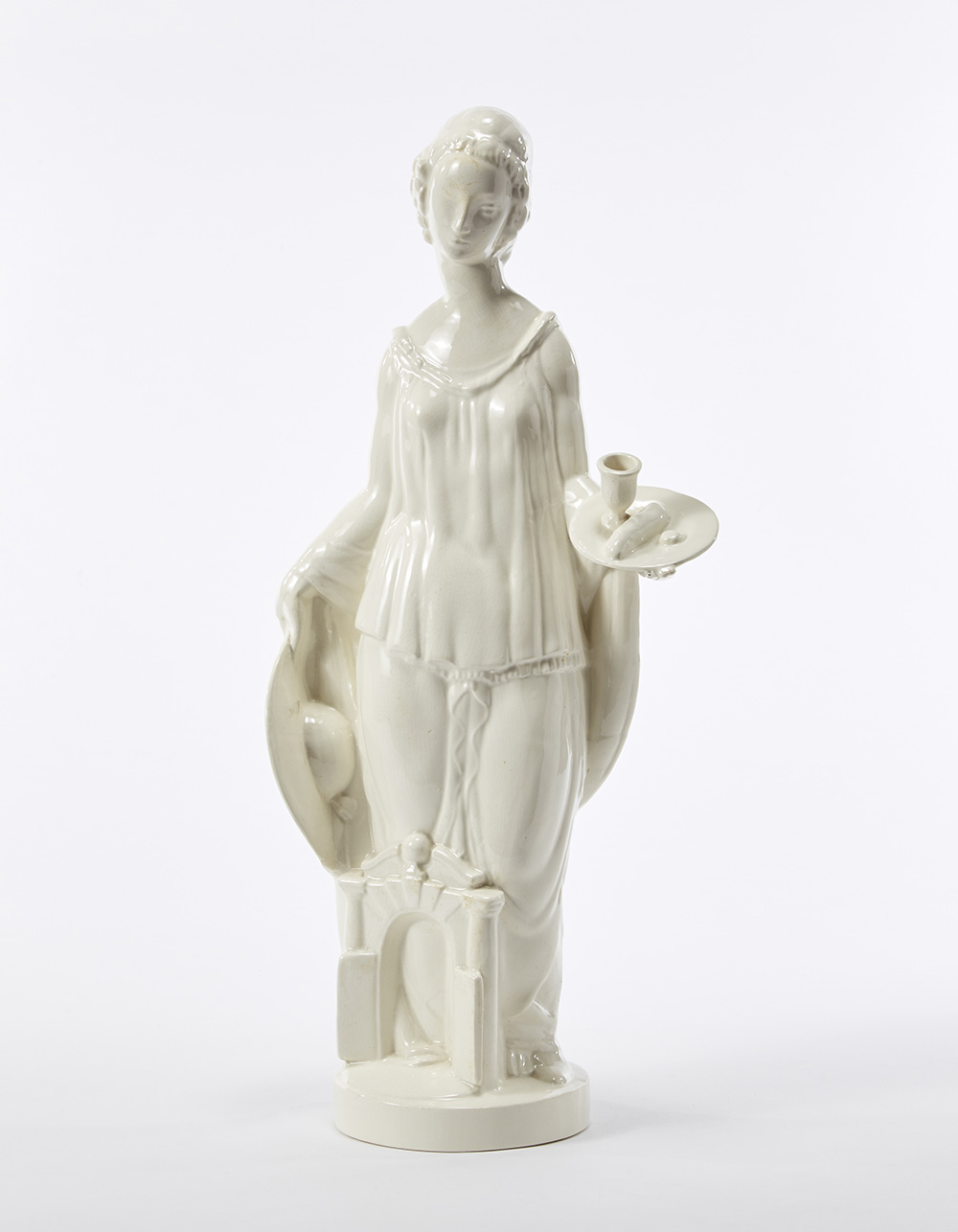 Terraglia bianca dura formata a colaggio e sotto vetrina. Manifattura Richard-Ginori S. Cristoforo, Milano, 1925ca. Recante marchio della manifattura in bruno sotto la base. (h cm 64,5) (lievi difetti)