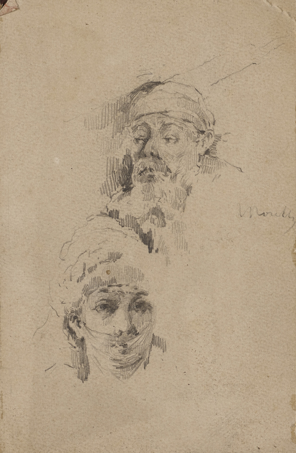 un autoritratto siglato "GP", Locato a Firenze e datato ottobre 1911, eseguito a grafite e matite colorate su carta; un probabile autoritratto in divisa firmato "GIO PONTI 1916", eseguito ad acquerelli policromi su cartoncino; due studi di teste di autore ignoto, inchiostro su carta incollata su cartone. (Misure diverse) (lievi difetti)