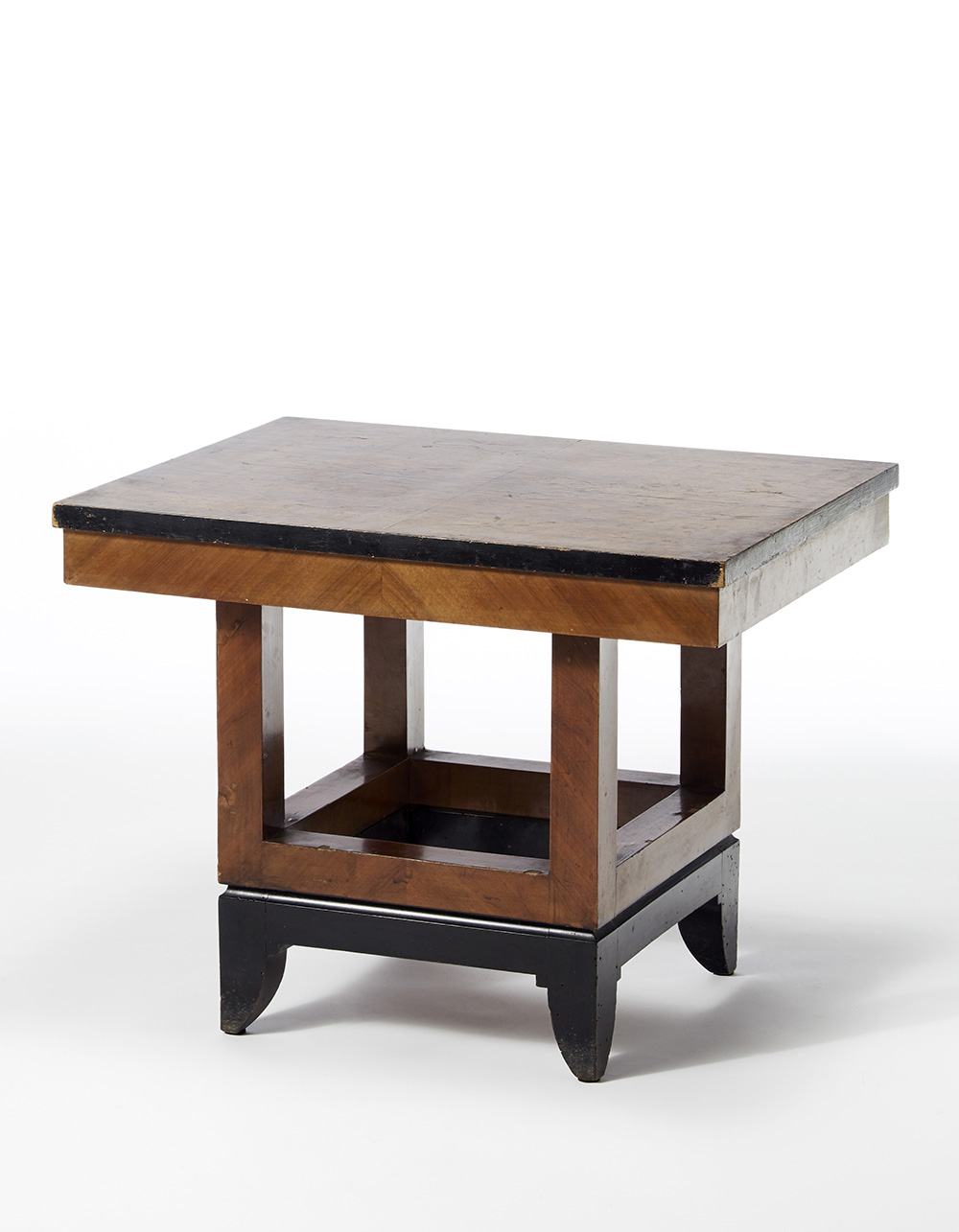 Coffee table with wood frame, four-legged base in ebonized wood, veneered supports, veneered top. Milan, 1926-1929. (65x50.5x50 cm.) (slight defects)