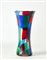 Vaso modello "pezzato". Murano, 1951ca. Vetro soffiato con tessere trasparenti pagliesco, rosse, zaffiro e verdi (variante Parigi). Disegno n. 4398 del Catalogo Rosso. Firmato all'ascido "venini murano ITALIA" e recante etichetta adesiva della manifattura sotto la base. (h cm 23,5) (gravi difetti)