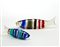Two fishes in colorless blown glass and polychrome bands, iridescent on the external surface. Venini, Murano, 1959ca. (l cm 30; l cm 21.5)