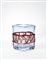 Vaso prismatico in vetro trasparente azzurro con applicazione a greca in vetro trasparente rosso. Esecuzione Mazzega per Danese, Murano, anni '60. Firmato a punta sotto la base "FULVIO BIANCONI". (h cm 13,3)