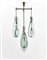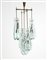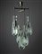 Lampada a sospensione a cinque luci modello "2338". Fontana Arte, Milano, 1965. Coppie di cristalli a goccia lavorati alla mola con scavo opaco, montatura in ottone ossidato acciaio. (h cm 102; d cm 69) (lievi difetti)