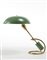 Swiveling table lamp model "12297 Scrittoio". Execution by Arredoluce, Monza, 1950ca. Polished brass structure, green lacquered aluminum lampshade. Bearing the "AL" brand under the base. (h max 38.5 cm.) (slight defects)