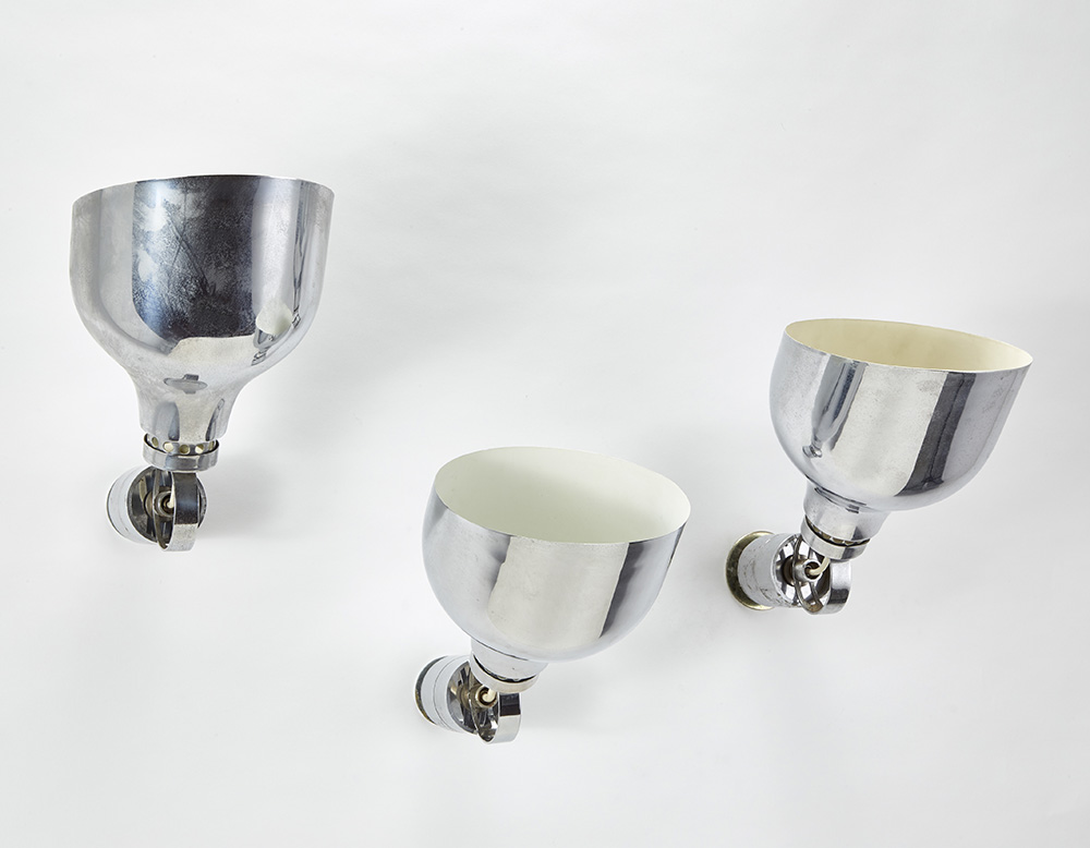 Tre appliques della serie "AM/AS". Produzione Sirrah, Italia, anni '70. Acciaio e alluminio cromato. (l cm 40) (difetti)