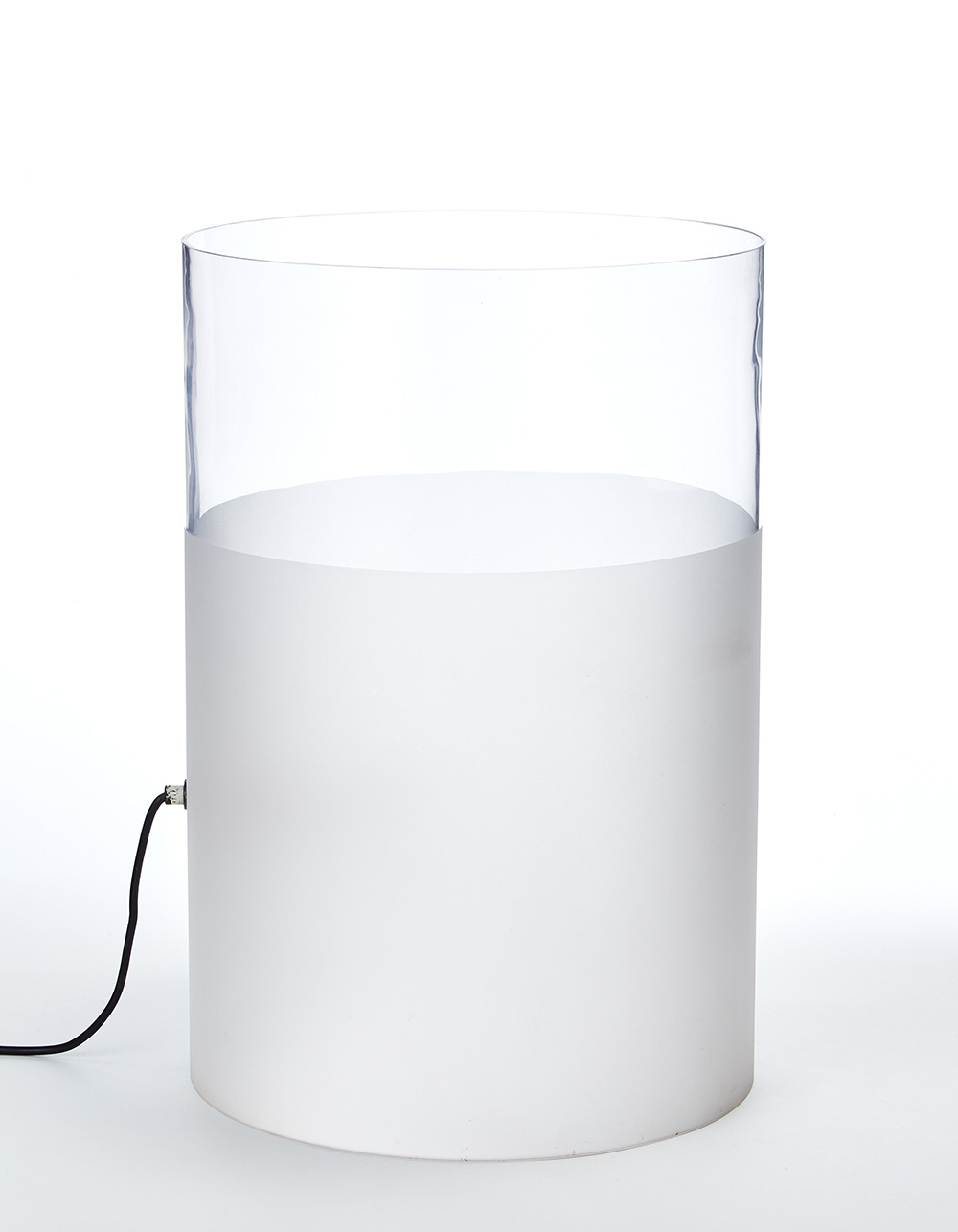 Lampada da tavolo cilindrica modello "Fatua". Produzione Fontana Arte, Milano, 1972ca. vetro incolore parzialmente acidato sulla superficie esterna. (h cm 51; d cm 34) (lievi difetti)