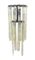 Applique con struttura in metallo cromato, pendenti in vetro lattescente. Anni '70. (cm 38x83x15) (difetti)