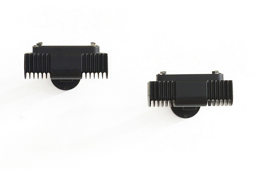 * A pair of wall lamps. 1980s. Black and plastic painted aluminum. (l 20.5 cm.) (losses)