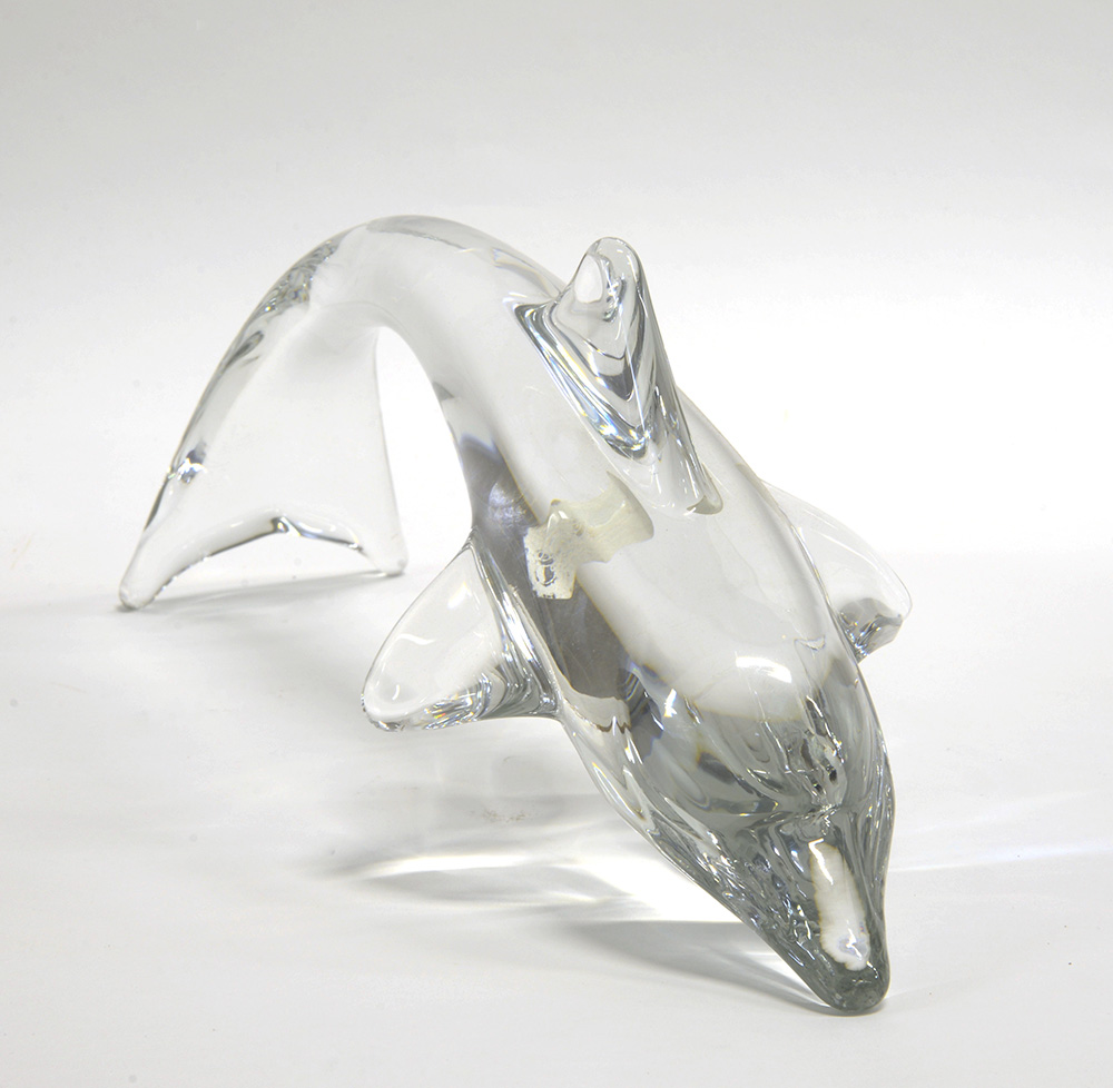 Daum "Delfino"Scultura in cristallo trasparente incolore. Nancy, Francia,...
