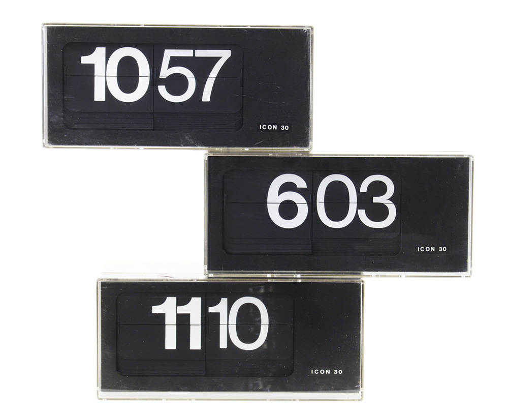 Three calendars model "Icon 30". Produced by Boselli, Milan, 1970s. (26x12x13 cm.) (slight defects)