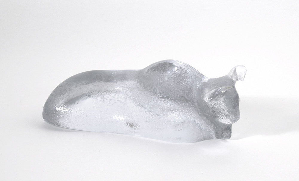 Colourless corroded glass sculpture. 1970. Signed and dated to base "KLINGER'70". (26.5x10x11 cm.)