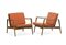 A pair of armchairs. Manzano (Udine), 1960s. Solid teak structure with cushions covered in salmon pink fabric. (68.5x70x80 cm.) (defects)