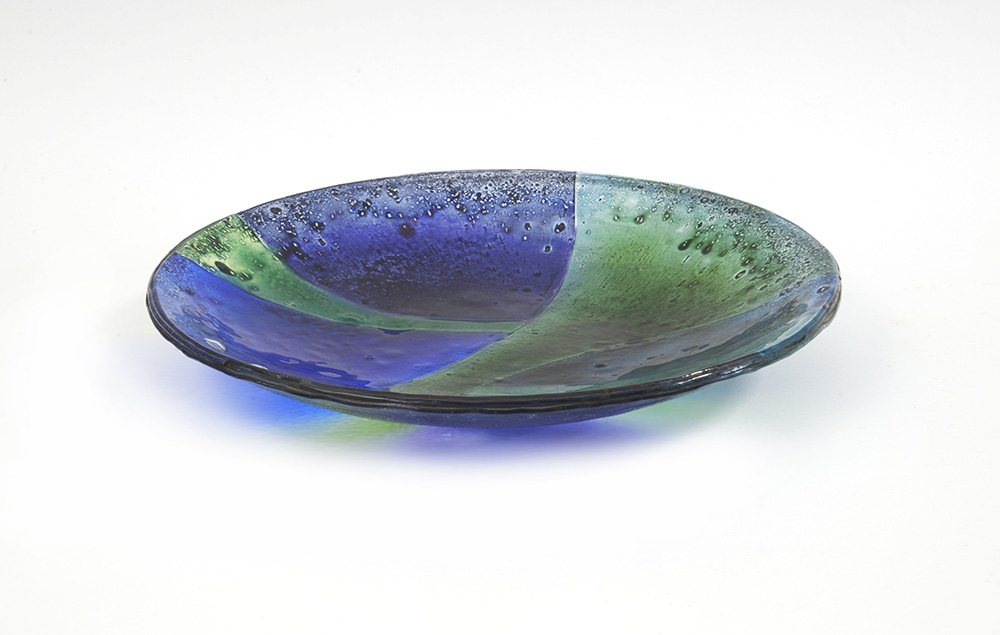 Piatto in vetro a tre strati con decoro policromo informale. Anni '20ca. (d...
