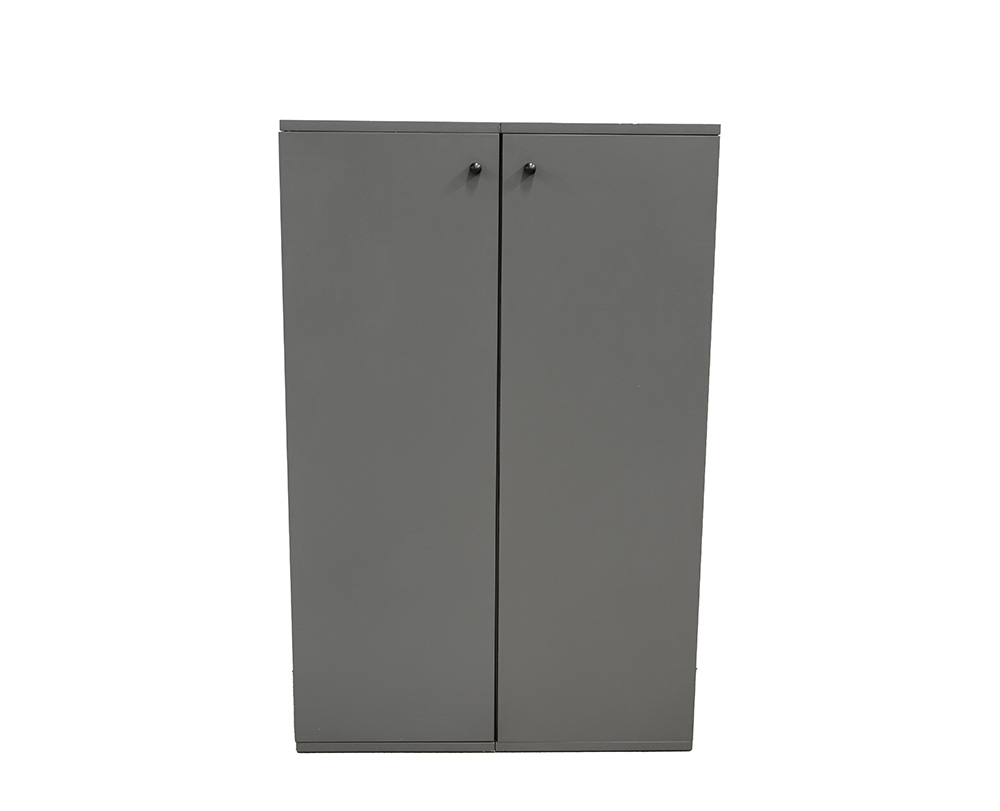 Coppia di mobili da ufficio modulari ad ante modello "Jointed". Produzione BBB Bonacina, Meda. Legno verniciato grigio. (cm 45x140x45)