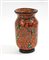 Blown glass vase with orange, yellow and dark amethyst murrine, applied base. Murano, second half 20th century. Bearing signature "Vittorio Ferro" under the base. (h 20 cm.)