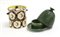 Lotto composto da una biscottiera in ceramica smaltata sotto vetrina con decorazioni all'aerografo in bruno e giallo marcata "GALVANI PORDENONE" unita a un porta miele in ceramica smaltato in verde. Italia, anni '30. (biscottiera: h cm 14,5, d cm 14,8; porta miele: h cm 14,3, d cm 16,5) (difetti)