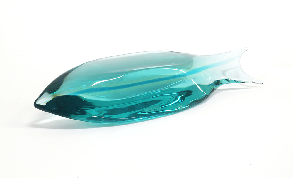 Manifattura di Murano "Pesce"Scultura in vetro sommerso trasparente incolore...