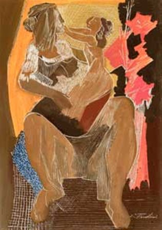 Eugenio Pardini (Viareggio, 1912 - 2003) Maternità Affresco su tavola, cm. 50x35 Firma in basso a destra. € 600/800