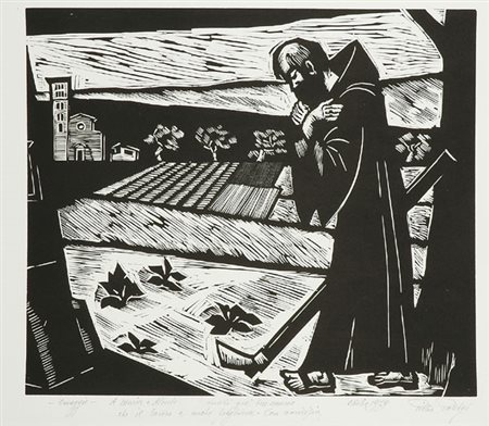 Pietro Parigi (Settimello, 1892 - Firenze, 1990) San Francesco Xilografia, mm. 500x700 Firma in basso a destra. € 0/0