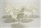 Sei poltroncine modello "Tulip". Produzione Knoll International, USA, 1955ca. Fusione di alluminio e vetroresina laccata bianco. (cm 68x82x60) (lievi difetti e mancanze)