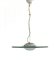Lampada a sospensione con disco in vetro di forte spessore satinato sulla superficie esterna, struttura in metallo verniciato bianco e ottone. Italia, anni '70. (h cm 80; d cm 60) (lievi difetti)